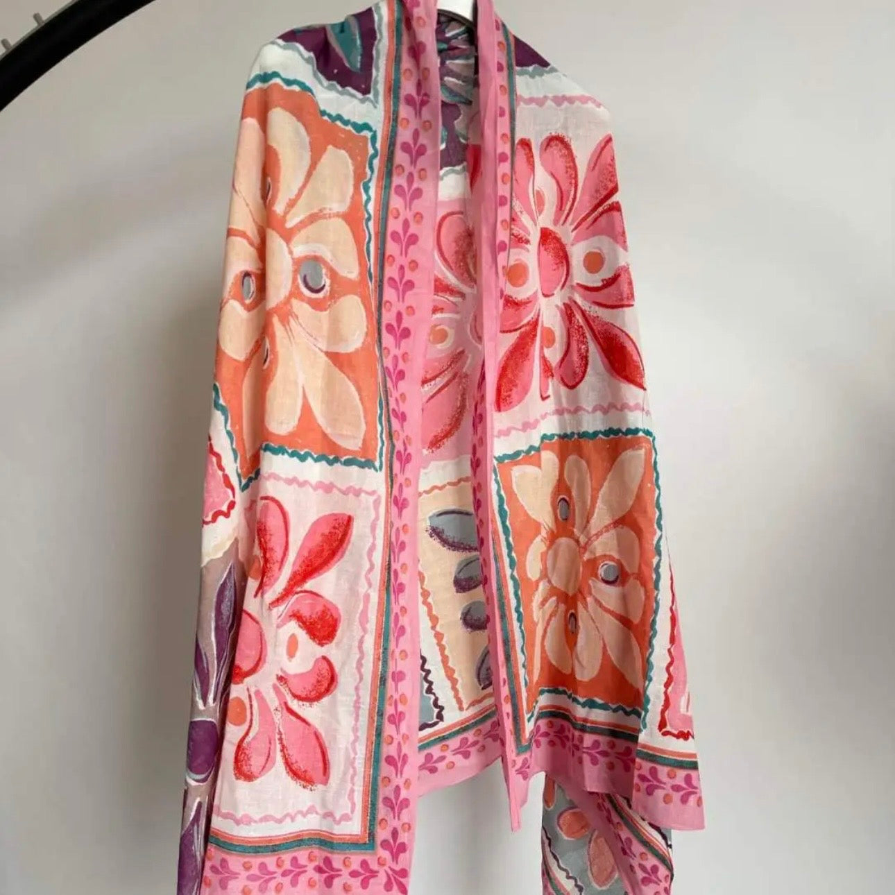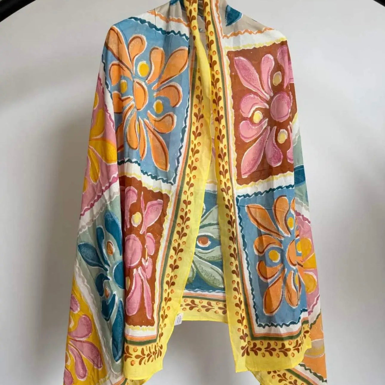 Mooie gekleurde dunnen sjaal van 100% katoen. Ook heerlijk en groot genoeg om om te slaan tijdens een frisse avond.